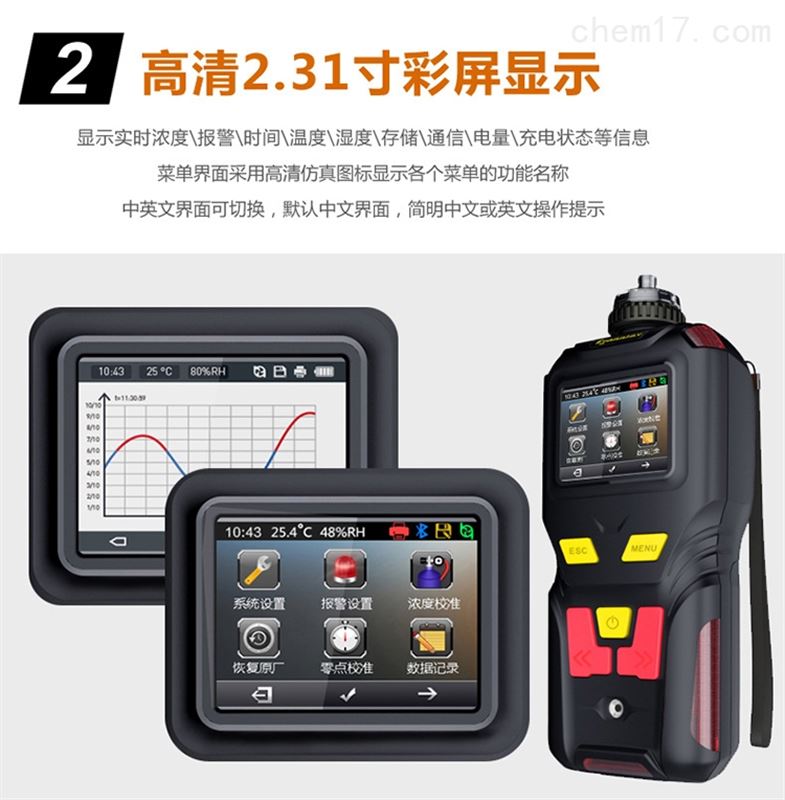 ●可以检测气体单位自由切换,单位可选:PPM、mg/m3、Vol%、LEL%、PPHM、ppb、mg/L